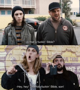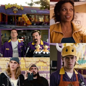 Jay and Silent Bob (Mewes and Smith) loiter outside the place (of course), but after a run in with the law and time in rehab, they no longer partake in drugs and are devout Christians (though they continue to deal).
