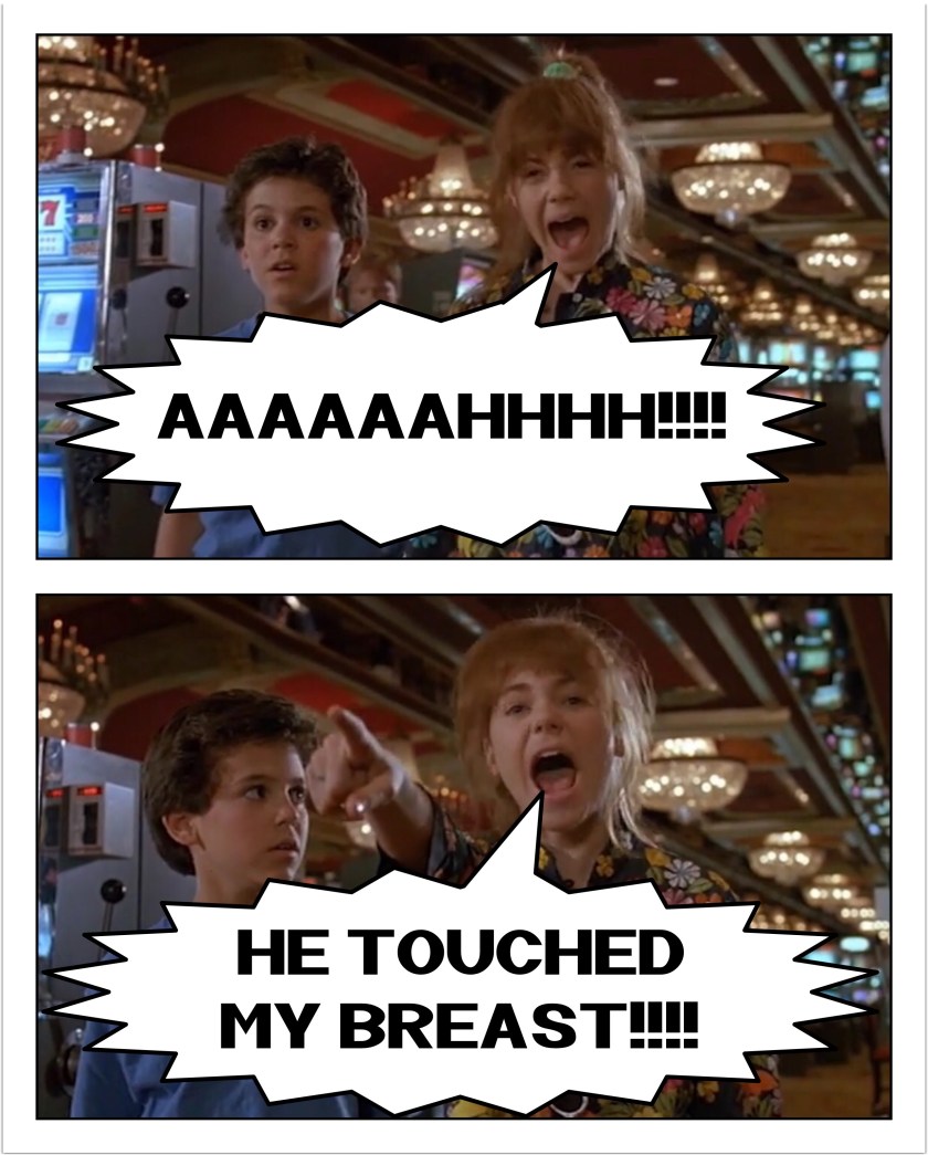 We get a montage (it’s a film made in the 1980’s, it was basically a law to have at least 1 montage that has a main character improving their skills while an upbeat pop song plays in the background!) of the kids hanging at hotel in Reno, where Jimmy plays a plethora of arcade games, while Haley makes numerous calls to the Nintendo Power Line to get tips on how to beat certain games. Putnam finds them and attempts to take Jimmy back to his mom, but Haley manages to get him off their back by accusing him of molestation (for real!).