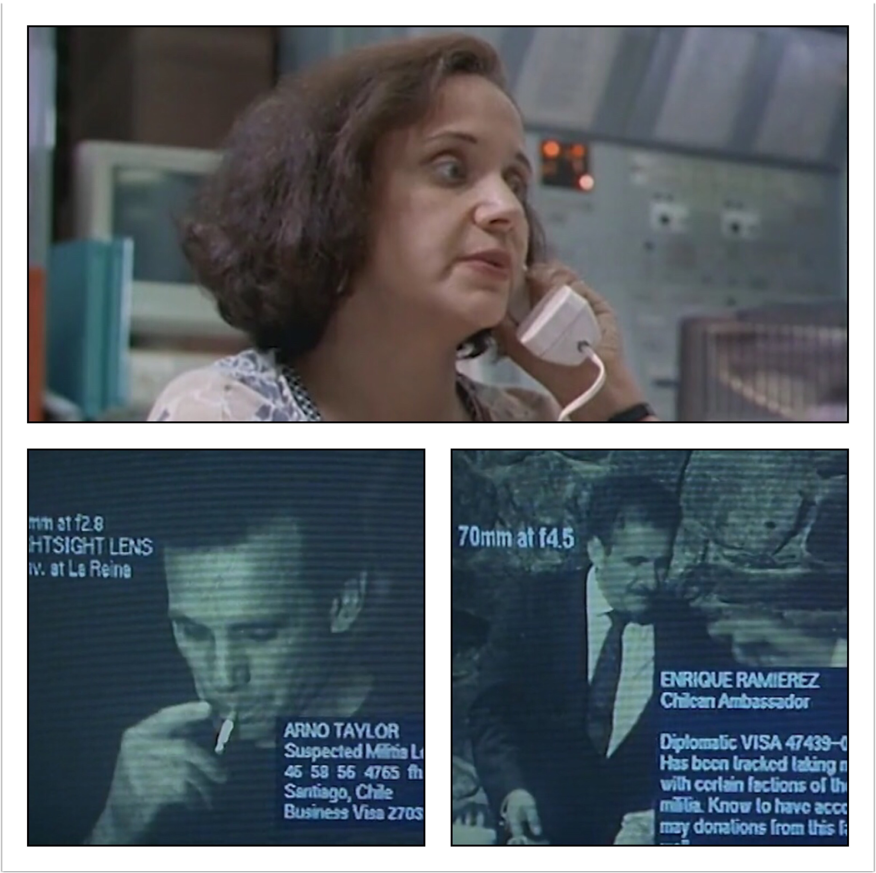 Sebastian acquires more info on Taylor thanks to a CIA telephone operator, who’s cool with the whole killing a Chilean ambassador (you’d also think the CIA would be tapping this phone call and this be able to track him down, but hey, I’m not a CIA agent or professional screenwriter so what the fuck do I know!?). Turns out that very same ambassador has ties to Taylor and his terrorist Group (OMG! I still don’t care).