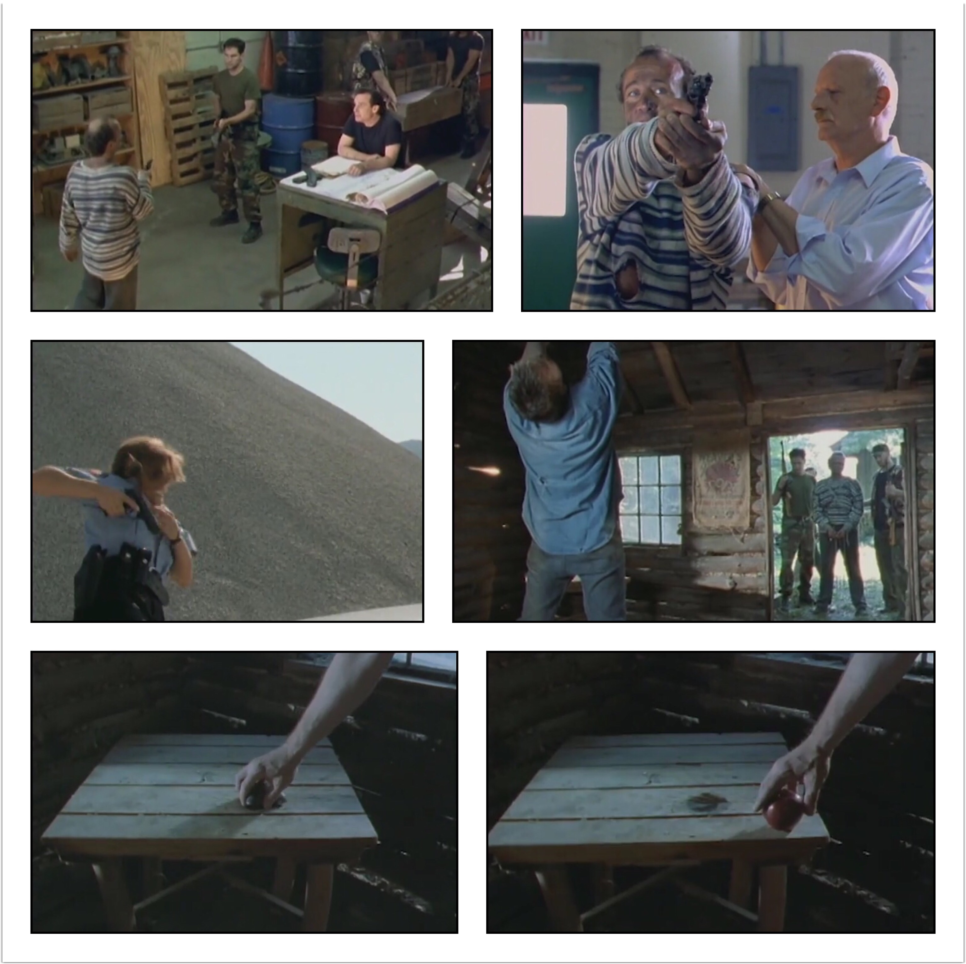 He infiltrates Freedom Construction (‘Murica!), only to be easily subdued, with Taylor going Bond villain on his whole plan and how he’s gonna frame Sebastian for the whole thing. It also turns out that Neil Kennedy (his old boss, remember? Dude from M*A*S*H, that help?) was in cahoots with Taylor the whole time (WHAT A TWIST! But not really). So Taylor and Kennedy chain up Sebastian in a secluded log cabin (which already has a previous dead guy, plus a rotten apple that gets replaced with a fresh one, this never gets explained), while lady cop and several other cops get shot by Taylor’s men.