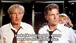 While I’ve yet to see Zero Hour! (1957), which the major influence on this film (so much so that the producers bought the rights to the script and used a lot of a dialogue word for word), I have seen a few of films in the Airport franchise, which were a series of movies in the 1970s, who’s main connection was they had George Kennedy playing the same character (his appearance time varied in each movie). They would also feature an ensemble of well known actors, and all involved a plane about to crash, with somebody outside the flight crew having to land it (in one it was a stewardess).