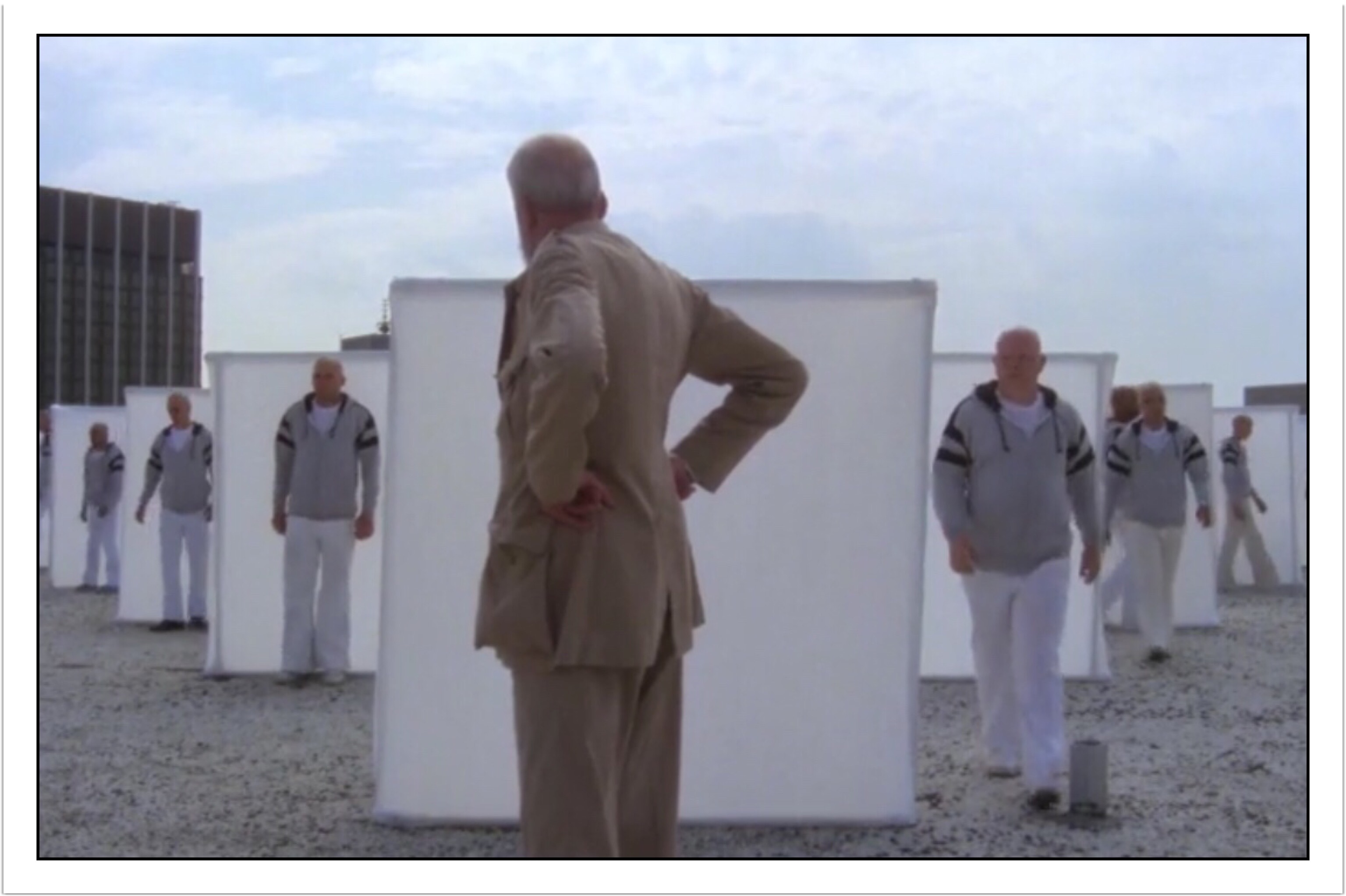 Jerzy takes a visit (hehe!) to Atlanta, and a bunch of those bald kids are now grown bald men in track suits. They assist Jerzy by doing what appears to be performance art on a random rooftop (that’s what it looks like anyway). He will randomly show up at places where Katy is, and do absolutely nothing! Dramatic music will accompany him as he does mundane shit, like climbing up some stairs (I guess at that age it’s mildly impressive), and looking at at stuff.