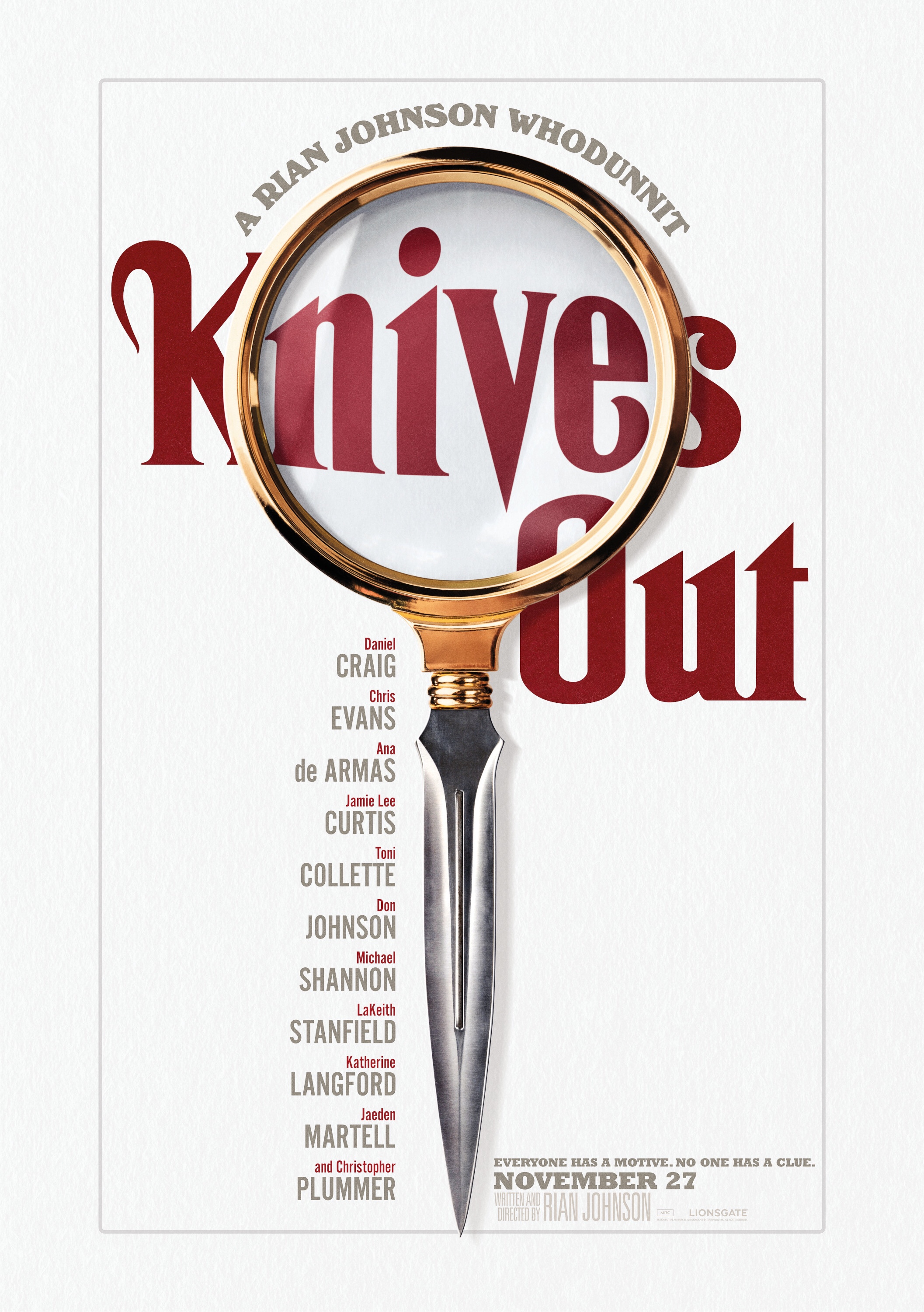 Starring Daniel Craig, Chris Evans, Ana de Armas, Jamie Lee Curtis, Michael Shannon, Don Johnson, Toni Collette, Lakeith Stanfield, Katherine Langford, Jaeden Martell, & Christopher Plummer