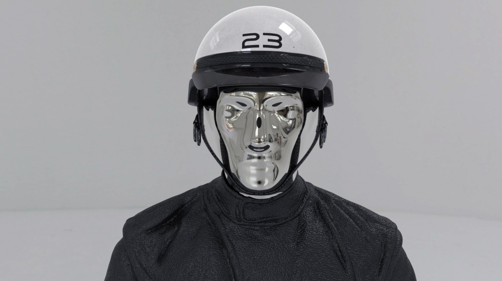 In a dystopian future, sexual intercourse and reproduction are prohibited, whereas use of mind-altering drugs is mandatory to enforce compliance among the citizens and to ensure their ability to conduct dangerous and demanding tasks. Emotions and the concept of family are taboo. Everyone is clad in identical white uniforms and has shaven heads to emphasize uniformity, except the police androids (who wear black) and robed monks. Instead of names, people have designations with three arbitrary letters (referred to as the “prefix”) and four digits, shown on an identity badge worn at all times.