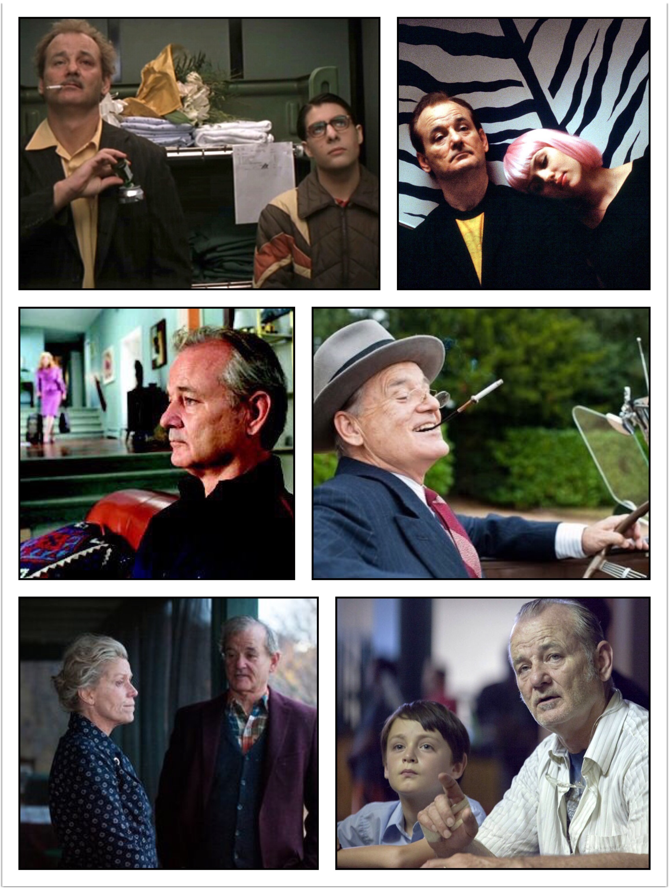 For his performance Sofia Coppola‘s Lost in Translation (2003), with Scarlett Johansson, Murray earned a Golden Globe and a British Academy Film Award, as well as an Academy Award nomination for Best Actor. He also frequently collaborates with directors Wes Anderson (since Rushmore, he’s appeared in most of his feature films) and Jim Jarmusch (appearing in 4 so far). He received Golden Globe nominations for his roles in Ghostbusters, Rushmore (1998), with Jason Schwartzman, Olivia Williams, Brian Cox, and Seymour Cassel; Hyde Park on Hudson (2012), with Laura Linney and Olivia Colman; St. Vincent (2014), with Melissa McCarthy, Naomi Watts, Jaeden Martell, and Chris O’Dowd; and the HBO miniseries Olive Kitteridge (2014), with Frances McDormand and Richard Jenkins, for which he later won his second Primetime Emmy Award. Murray received the Mark Twain Prize for American Humor in 2016.
