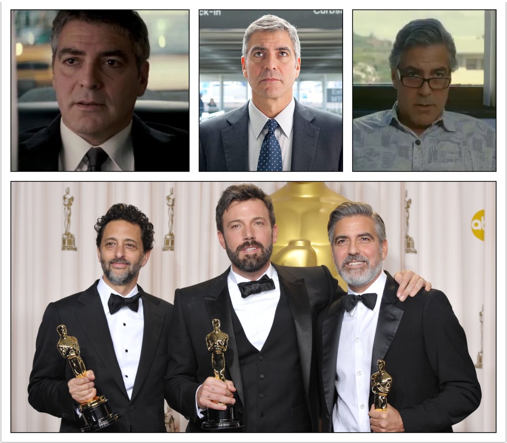 Clooney was also nominated for the Academy Award for Best Actor for Tony Gilroy’s Michael Clayton (2007), with Tom Wilkinson, Swinton, and Sydney Pollack; Jason Reitman’s Up in the Air (2009), with Vera Farmiga, Anna Kendrick, Danny McBride, Jason Bateman, Zach Galifianakis, and J.K. Simmons; and Alexander Payne’s The Descendants (2011), with Shailene Woodley, Amara Miller, Beau Bridges, Judy Greer, Matthew Lillard, and Robert Forster. He won the Academy Award for Best Picture as a producer for Argo (2012), with Ben Affleck (who also directed), Bryan Cranston, Alan Arkin, and Goodman.