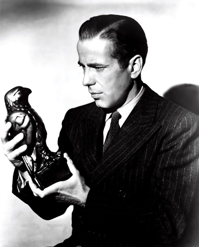 His breakthrough from supporting roles to stardom came with High Sierra (1941), with Ida Lupino; and The Maltese Falcon (1941), his first collaboration with filmmaker John Huston, considered one of the first great noir films. It was also his first of many collaborations with actors Peter Lorre and Sydney Greenstreet. Bogart’s private detectives, Sam Spade (in The Maltese Falcon) and Phillip Marlowe (in Howard Hawks‘s 1946 adaptation of The Big Sleep), became the models for detectives in other noir films. His most significant romantic lead role was with Ingrid Bergman in Casablanca (1942), directed by Michael Curtiz; and he received his first nomination for the Academy Award for Best Actor. Bogart and 19-year-old Lauren Bacall fell in love when they filmed To Have and Have Not (1944); soon after the main filming for The Big Sleep (1946, their second film together), he filed for divorce from his third wife and married Bacall. After their marriage, she played his love interest in Dark Passage (1947) and Key Largo (1948), with Edward G. Robinson, Lionel Barrymore, and Claire Trevor. Other notable roles from this time include Peter Godfrey’s The Two Mrs. Carrols (1947), with Barbara Stanwyck.