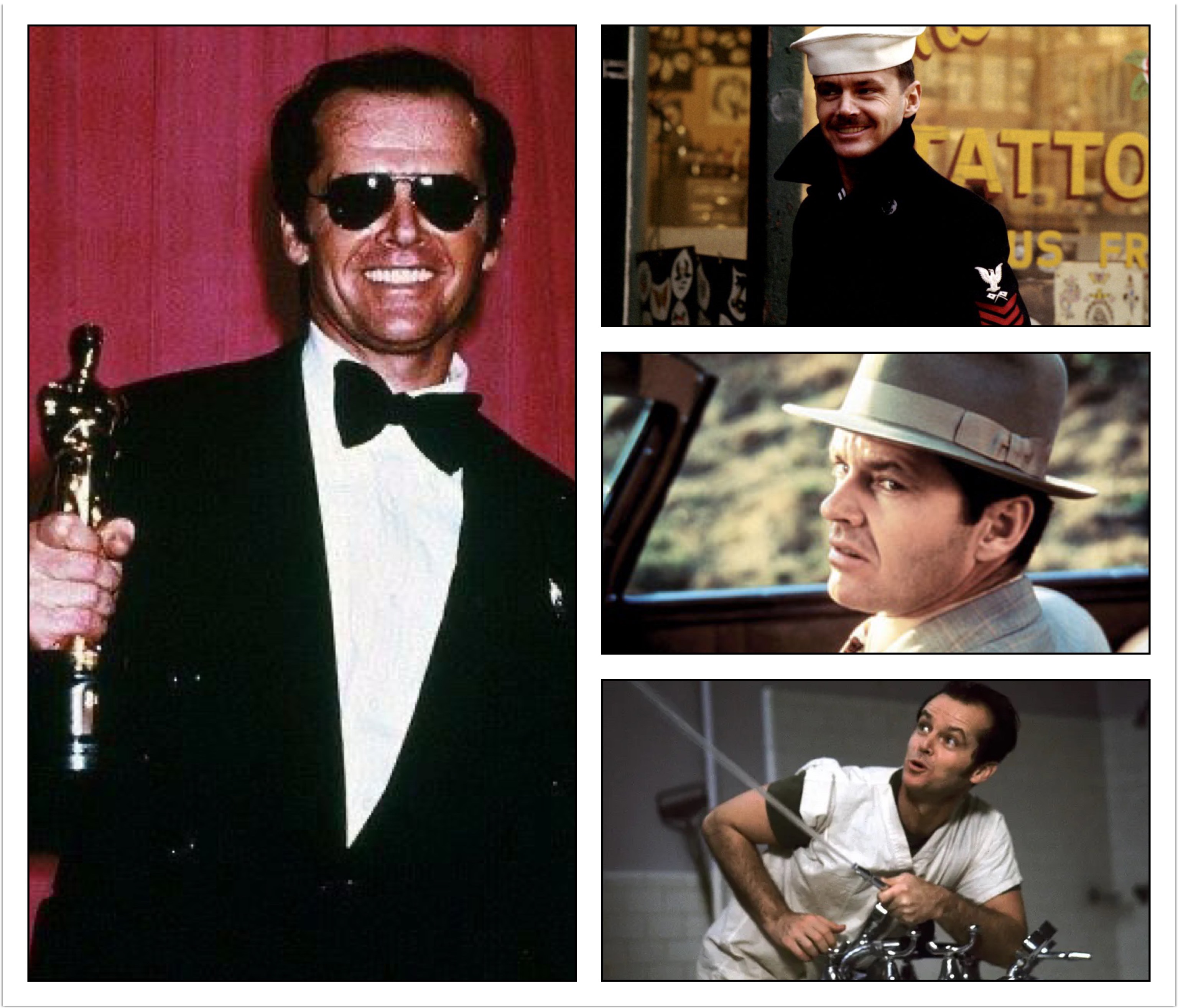 Nicholson was nominated 3 years in a row for the Academy Award for Best actor for his role as Signalman 1st Class Billy L. “Badass” Buddusky in Hal Ashby‘s The Last Detail (1973), with Otis Young, Randy Quaid, Clifton James, Michael Moriarty, Carol Kane, and Nancy Allen; Private Detective J. J. “Jake” Gittes in Roman Polanski’s Chinatown (1974), with Faye Dunaway, John Hillerman, Perry Lopez, and John Huston; and winning for his role as Randle Patrick “Mac” McMurphy in Miloš Forman‘s One Flew Over the Cuckoo’s Nest (1975), with Louise Fletcher, Will Sampson, Danny DeVito, Sydney Lassick, William Redfield, Christopher Lloyd, and Brad Dourif. Cuckoo’s Nest is 1 of 3 films to win the big 5 Academy Awards (Picture, Director, Screenplay, Actor, and Actress), the other two being Frank Capra‘s It Happened One Night (1934), with Clark Gable and Claudette Colbert; and Jonathan Demme‘s The Silence of the Lambs (1991), with Jodie Foster and Anthony Hopkins.