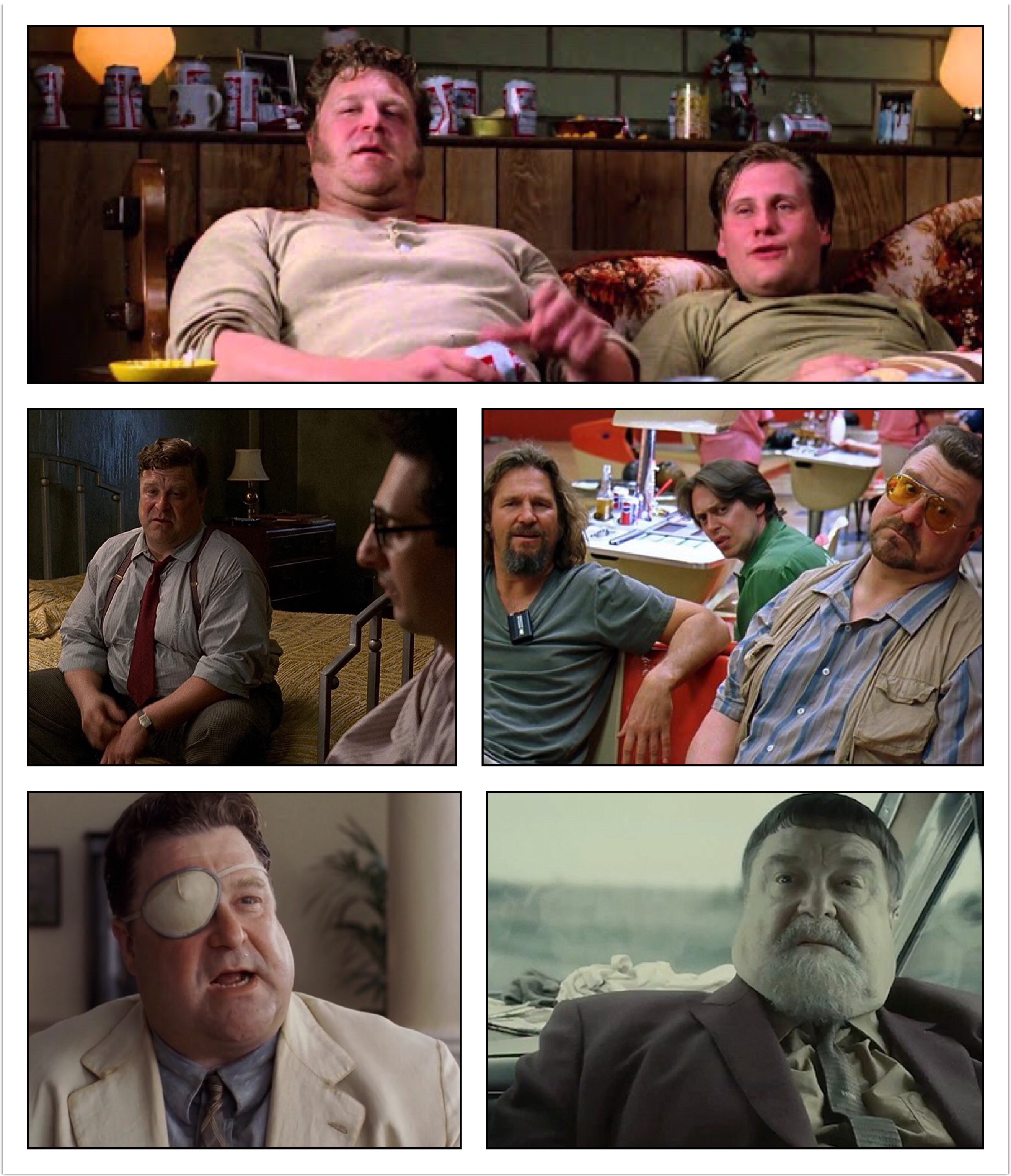 John Stephen Goodman (June 20, 1952) is an American actor. He played Dan Conner on the ABC TV series Roseanne (1988–1997; 2018), for which he won a Golden Globe Award for Best Actor in 1993 and reprised the role in its sequel series The Conners. He is a regular collaborator with filmmaking duo Joel & Ethan Coen (aka The Coen Brothers) on such films as Raising Arizona (1987), with Nicolas Cage, Holly Hunter, and William Forsythe; Barton Fink (1991), with John Turturro; The Big Lebowski (1998), with Jeff Bridges, Steve Buscemi, Julianne Moore, Peter Stormare, and Philip Seymour Hoffman; O Brother, Where Art Thou? (2000), with George Clooney, Turturro, and Tim Blake Nelson; and Inside Llewyn Davis (2013), with Oscar Isaac, Carey Mulligan, Garrett Hedlund, F. Murray Abraham, Justin Timberlake, and Adam Driver.