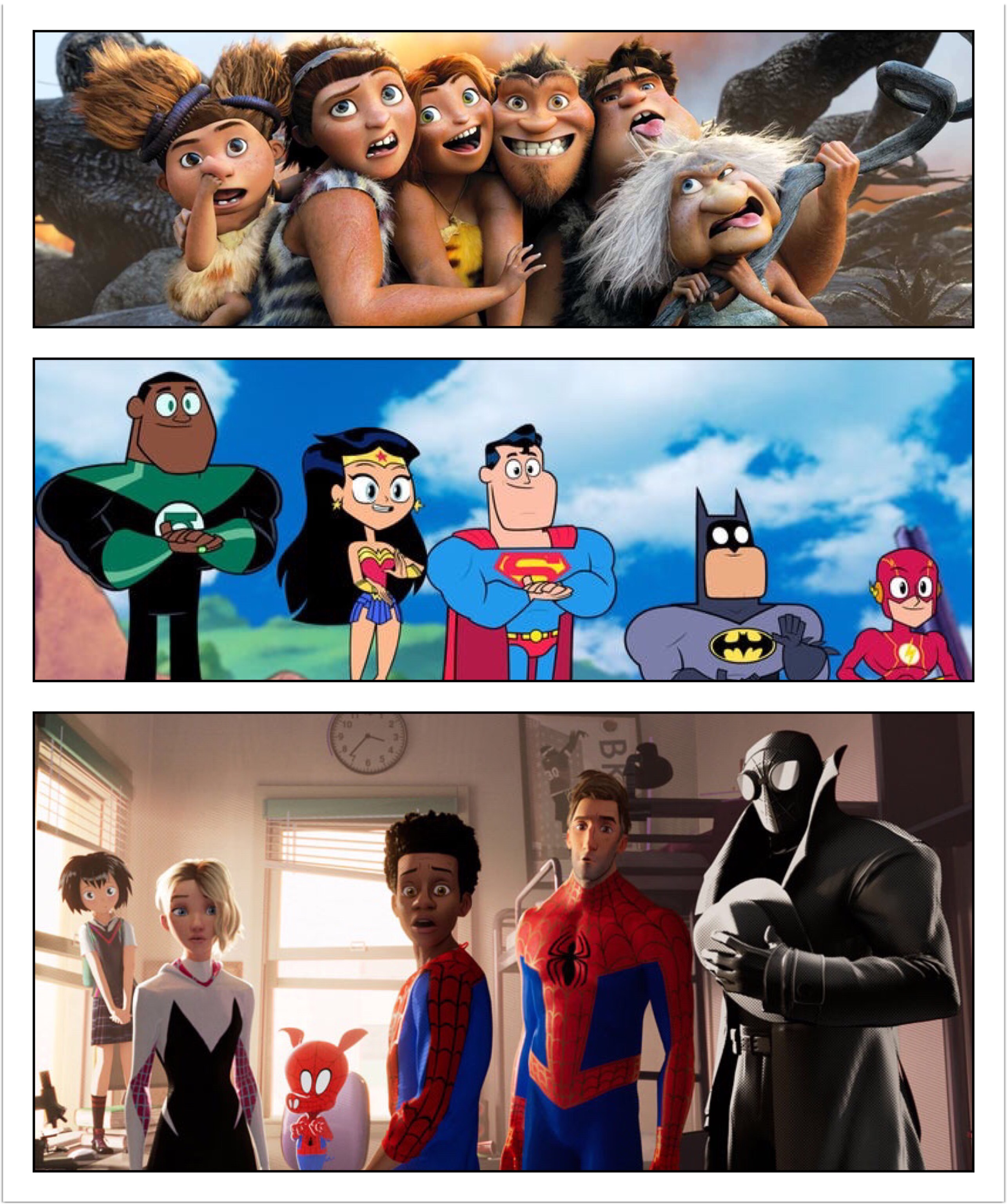 Cage has also voiced such characters as caveman patriarch Grug in The Croods (2013), with Emma Stone, Ryan Reynolds, Catherine Keener, Clark Duke, and Cloris Leachman; and the sequel The Croods: A New Age (2020), with Peter Dinklage, Leslie Mann, and Kelly Marie Tran joining the cast; Superman in the DC superhero film Teen Titans GO! to the Movies (2018), with Will Arnett, Kristen Bell, Patton Oswalt; and Spider-Man Noir in the Marvel superhero film Spider-Man: Into the Spider-Verse (2018), with Jake Johnson, Hailee Steinfeld, Mahershala Ali, Brian Tyree Henry, Lily Tomlin, Luna Lauren Velez, John Mulaney, Kimiko Glenn, and Liev Schreiber