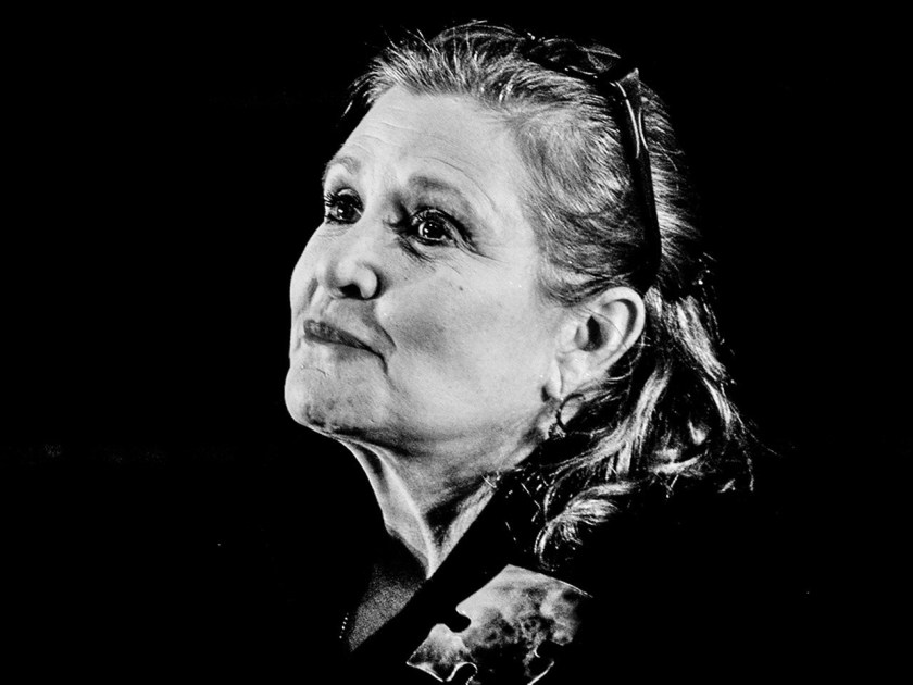 Carrie Frances Fisher (October 21, 1956 – December 27, 2016) was an American actress, writer, and comedienne. She played Princess Leia in the Star Wars films, a role for which she was nominated for four Saturn Awards. They collectively featured Mark Hamill, Harrison Ford, Peter Cushing, Alec Guinness, David Prowse, James Earl Jones, Anthony Daniels, Kenny Baker, Peter Mayhew, Billy Dee Williams, Frank Oz, Ian McDiarmid, Adam Driver, Daisy Ridley, John Boyega, Oscar Isaac, Lupita Nyong’o, Andy Serkis, Domhnall Gleeson, Max von Sydow, Gwendoline Christie, Kelly Marie Tran, Laura Dern, Benicio del Toro, Naomi Ackie, Richard E. Grant, Keri Russell, and Joonas Suotamo.