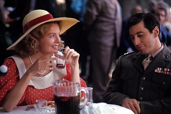 She rose to prominence with her first major film role as Kay Adams-Corleone in Francis Ford Coppola‘s The Godfather (1972), with Marlon Brando, Al Pacino, James Caan, Castellano, Robert Duvall, Talia Shire, Sterling Hayden, John Marley, and Richard Conte. She would reprise the role in its sequels The Godfather Part II (1974), and The Godfather Part III (1990), with Sofia Coppola, Andy García, Joe Mantegna, and Eli Wallach.