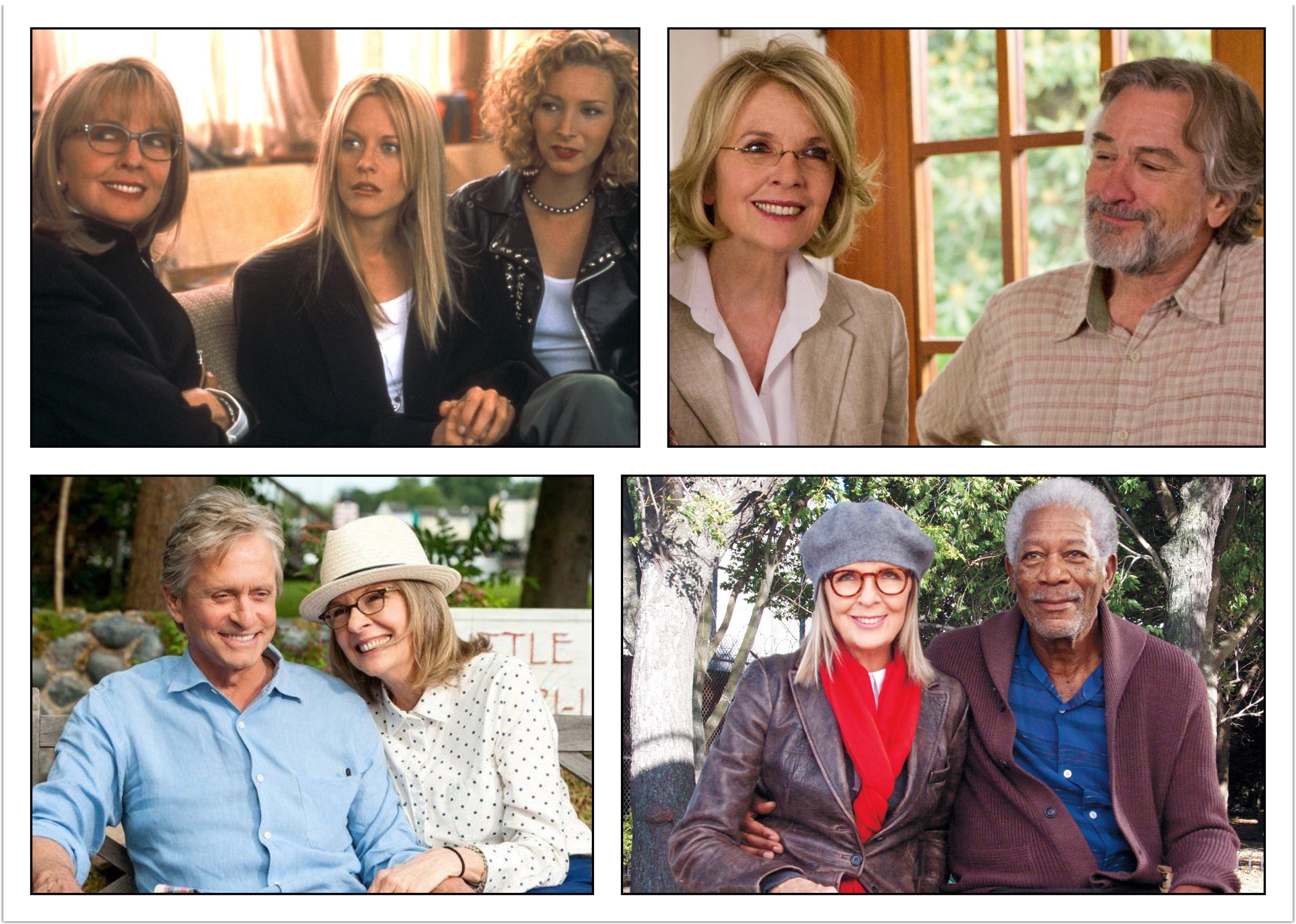 Later roles include Hanging Up (2000), with Meg Ryan, Lisa Kudrow, Walter Matthau, and Adam Arkin; Town & Country (2001), with Beatty, Hawn, Garry Shandling, Andie MacDowell, Jenna Elfman, Nastassja Kinski, and Charlton Heston; Lawrence Kasdan‘s Darling Companion (2012), with Kevin Kline, Richard Jenkins, Mark Duplass, Elizabeth Moss, Shepard, and Diane Wiest; The Big Wedding (2013), with De Niro, Katherine Heigl, Amanda Seyfried, Topher Grace, Ben Barnes, Susan Sarandon, and Robin Williams; Rob Reiner‘s And So It Goes (2014), with Michael Douglas; 5 Flights Up (2014), with Morgan Freeman.