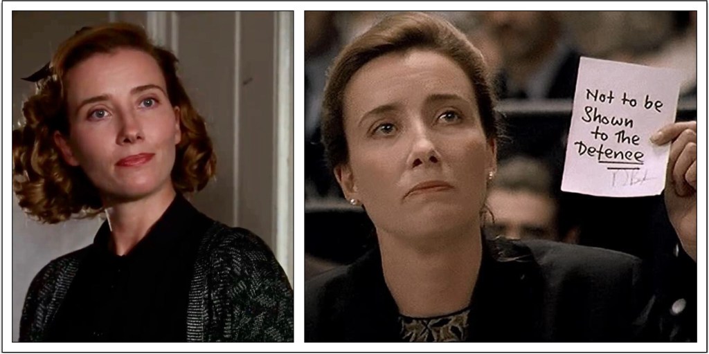 She then had dual Academy Award nominations for her roles in Merchant’s The Remains of the Day (1993), with Hopkins, James Fox, Christopher Reeve, Peter Vaughan, Hugh Grant, Michael Lonsdale, Tim Pigott-Smith, and Lena Headey; and Jim Sheridan‘s In the Name of the Father (1993), with Daniel Day-Lewis and Pete Postlethwaite; becoming part of a handful of performers to be nominated for two acting Oscars in the same year (including Fay Bainter, Teresa Wright, Barry Fitzgerald, Jessica Lange, Sigourney Weaver, Al Pacino, Holly Hunter, Julianne Moore, Jamie Foxx, Cate Blanchett, and Scarlett Johansson).