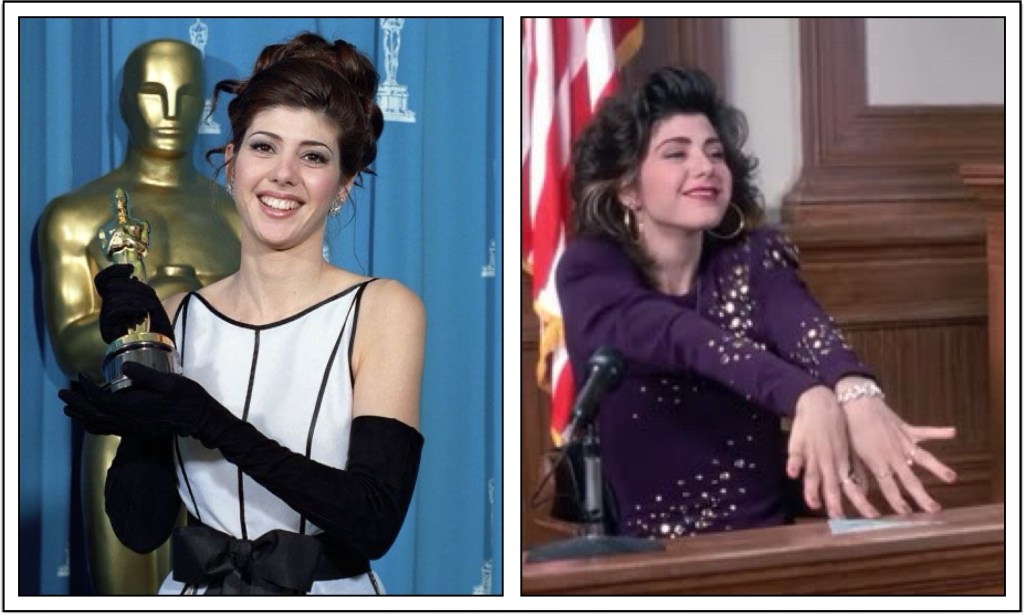 Her breakout role was in Jonathan Lynn’s My Cousin Vinny (1992), with Joe Pesci, Ralph Macchio, Mitchell Whitfield, Lane Smith, Bruce McGill, Fred Gwynne, and Austin Pendleton – for which she won the Academy Award for Best Supporting Actress. Other films in the early 1990s include Alan Rudolph’s Equinox (1992), with Matthew Modine, Lara Flynn Boyle, Tyra Ferrell, Kevin J. O’Connor, Tate Donovan, Lori Singer, and M. Emmett Walsh; Richard Attenborough’s Chaplin (1992), with Robert Downey Jr., Dan Aykroyd, Geraldine Chaplin, Kevin Dunn, Anthony Hopkins, Milla Jovovich, Moira Kelly, Kevin Kline, Diane Lane, Penelope Ann Miller, Paul Rhys, John Thaw, Nancy Travis, and James Woods; Tony Bill’s Untamed Heart (1993), with Christian Slater and Rosie Perez; Ron Howard’s The Paper (1994), with Michael Keaton, Glenn Close, Randy Quaid, Robert Duvall, Jason Alexander, Spalding Gray, and Catherine O’Hara; and Norman Jewison’s Only You (1994), with Downey Jr., Bonnie Hunt, Joaquim de Almeida, Fisher Stevens, and Billy Zane.
