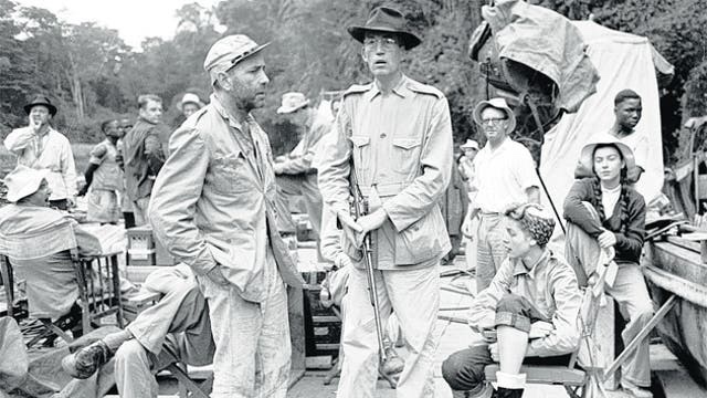 Films in the 1950s include The Asphalt Jungle (1950), with Sterling Hayden, Louis Calhern, Jean Hagen, James Whitmore, Sam Jaffe, and John McIntire, and Marilyn Monroe; The Red Badge of Courage (1951), with Audie Murphy, Bill Mauldin, Douglas Dick, Andy Devine, Arthur Hunnicutt and Royal Dano; The African Queen (1951), with Bogart, Katharine Hepburn, Robert Morley, Peter Bull, Walter Gotell, Richard Marner and Theodore Bikel; Moulin Rouge (1952), with José Ferrer, Zsa Zsa Gabor, Suzanne Flon, Eric Pohlmann, Colette Marchand, Christopher Lee, Peter Cushing, Katherine Kath, Theodore Bikel, and Muriel Smith; Beat the Devil (1953), with Bogart, Jones, Gina Lollobrigida, Robert Morley, Lorre and Bernard Lee; Moby Dick (1957), with Gregory Peck, Richard Basehart, Leo Genn, and Orson Welles; Heaven Knows, Mr. Allison (1957), with Deborah Kerr and Robert Mitchum; The Barbarian and the Geisha (1958), with John Wayne, Eiko Ando, Sam Jaffe, and Sō Yamamura; and The Roots of Heaven (1959), with Errol Flynn, Juliette Gréco, Trevor Howard, Eddie Albert, Welles, Paul Lukas, Herbert Lom, and Grégoire Aslan.